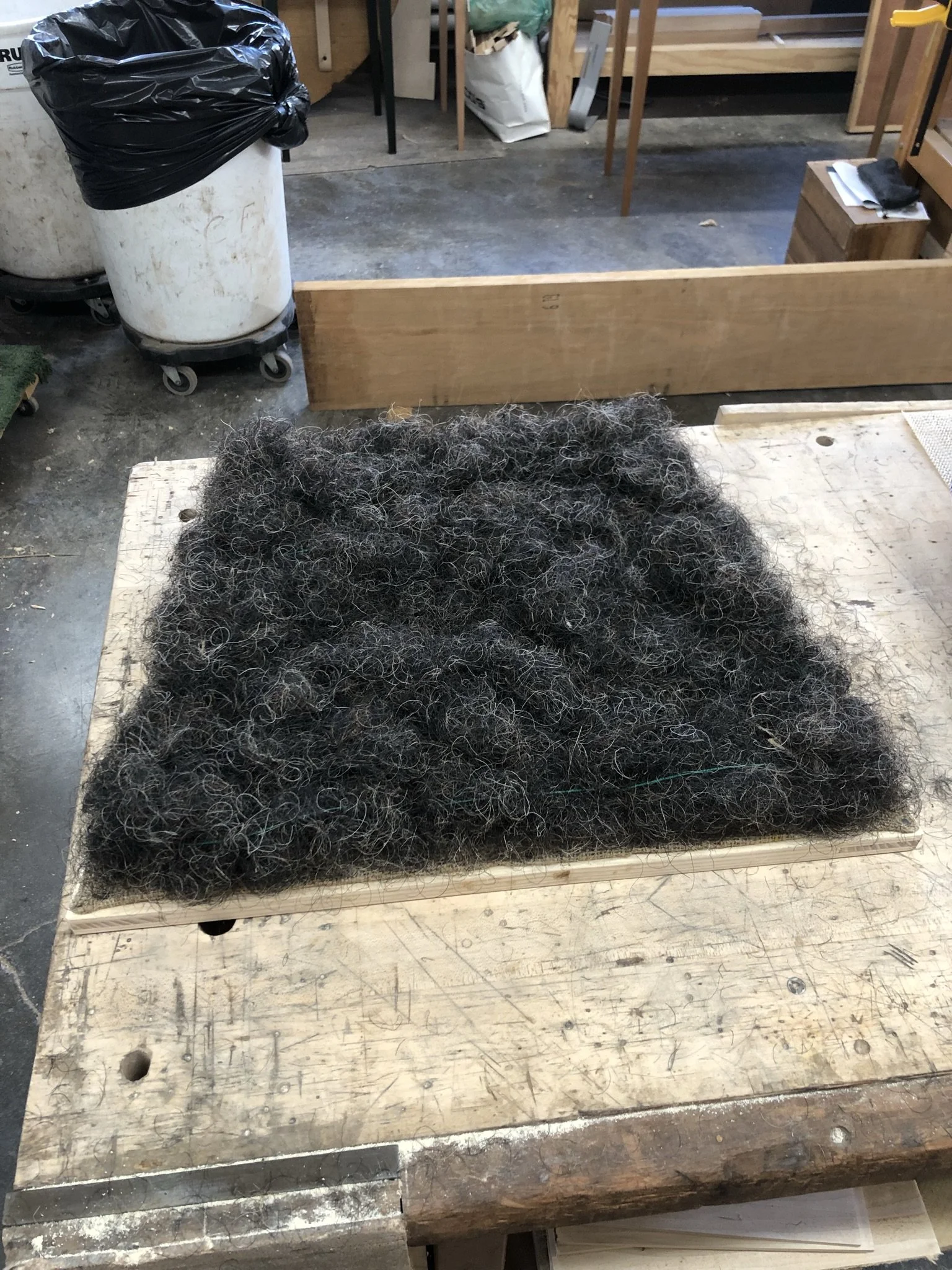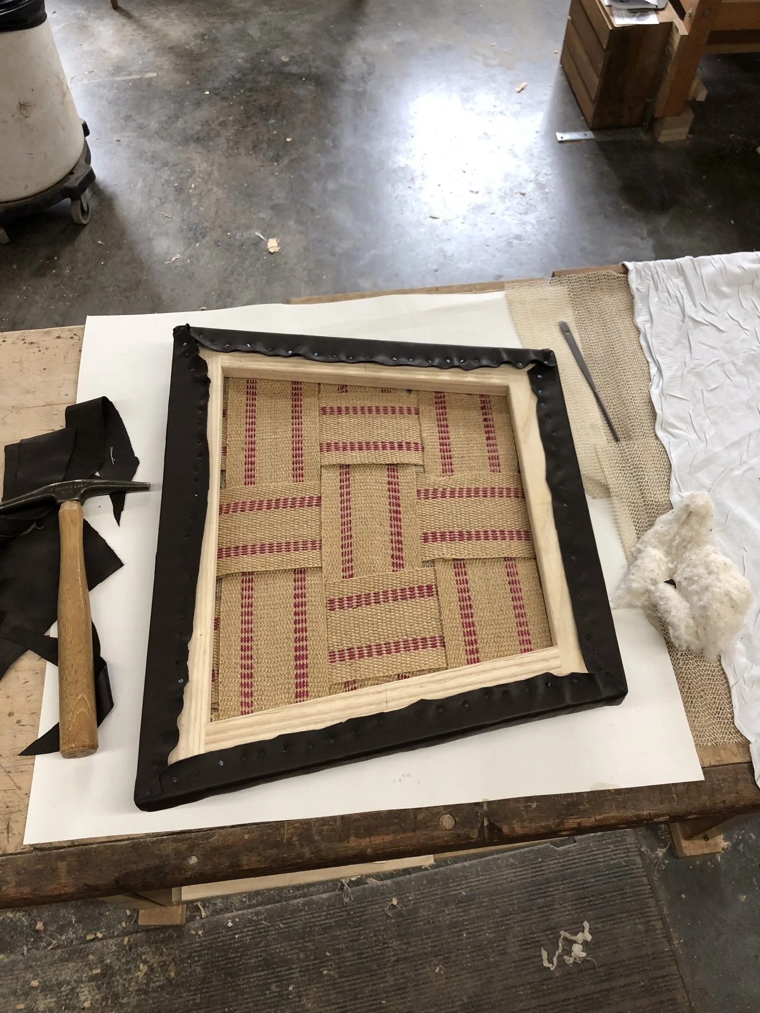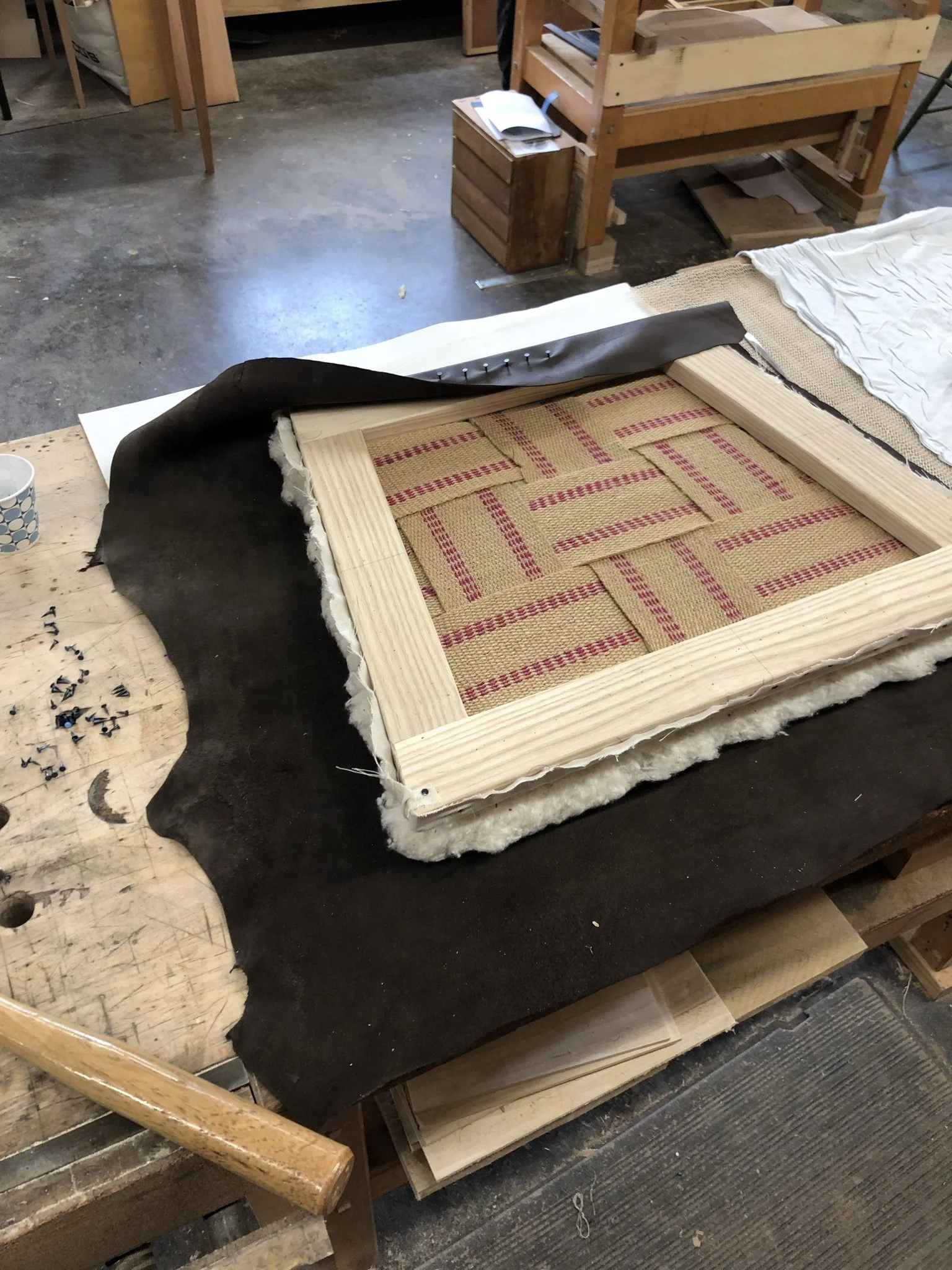2022. Cherry, walnut, maple, lambskin. Shellac. Dimensions are 20” L x 20” W x 39” H.